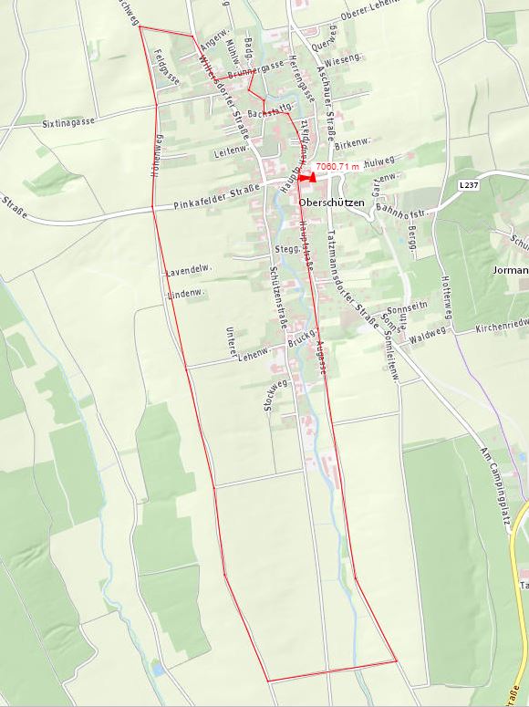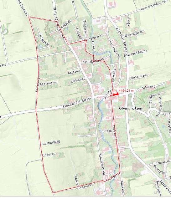 1,7 km eine Asphaltstrecke im Ortsgebiet.