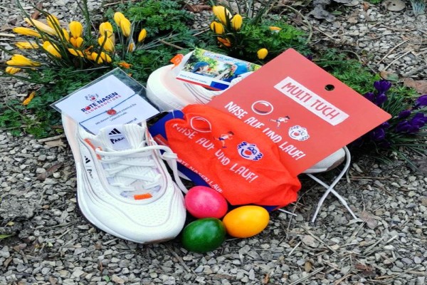 Vielleicht sind unsere Sticker oder unser Laufpackage etwas für dein Osternest. Wenn du bis spätestens 30.03.2026 bestellst, dann sind die ROTE NASEN Produkte auch garantiert pünktlich bei dir.