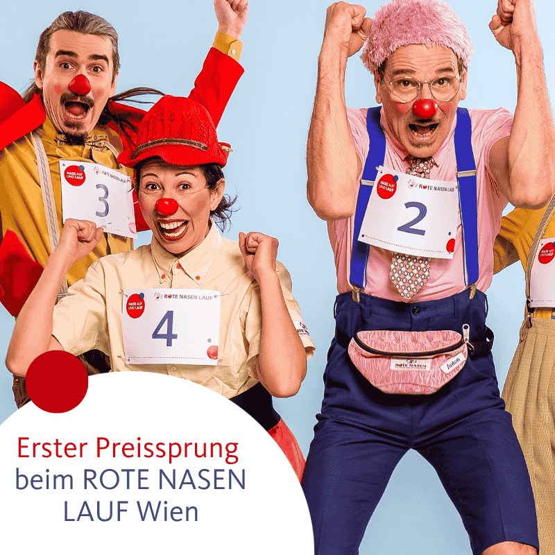 Der erste Preissprung am 01.05. steht bevor. Noch bis 30.04.2026 kannst du dich vergünstigt für den ROTE NASEN LAUF Wien anmelden – danach wird die Startgebühr ein wenig höher. Also sichere dir noch schnell einen Startplatz für den Lauf am 20.09.!