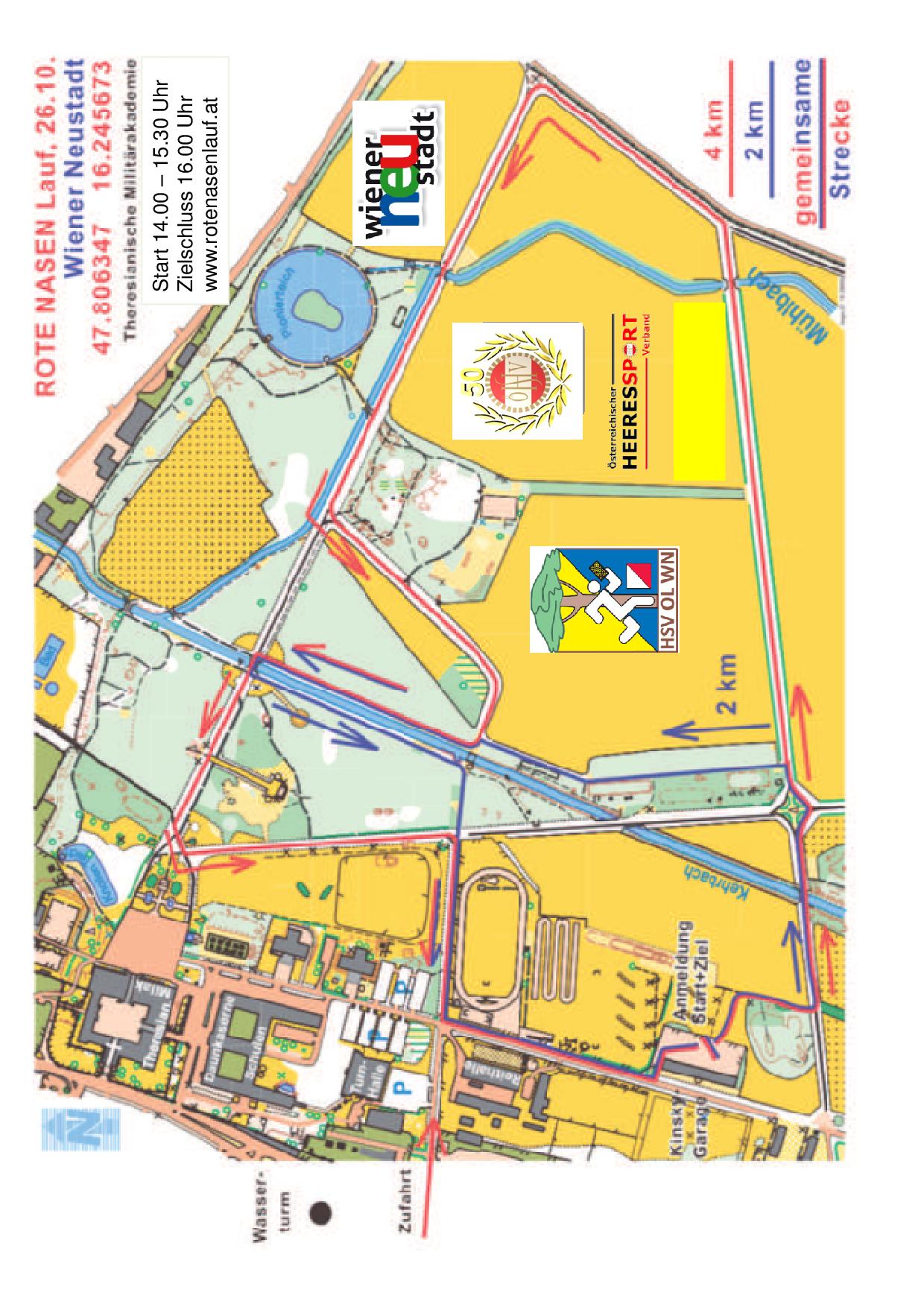 Parkplatz, Treffpunkt: Wiener Neustadt, Park der Militärakademie, Kinskygarage, der Parkplatz ist ca 50m nach der Einfahrt links. Details siehe Plan Laufstrecke.