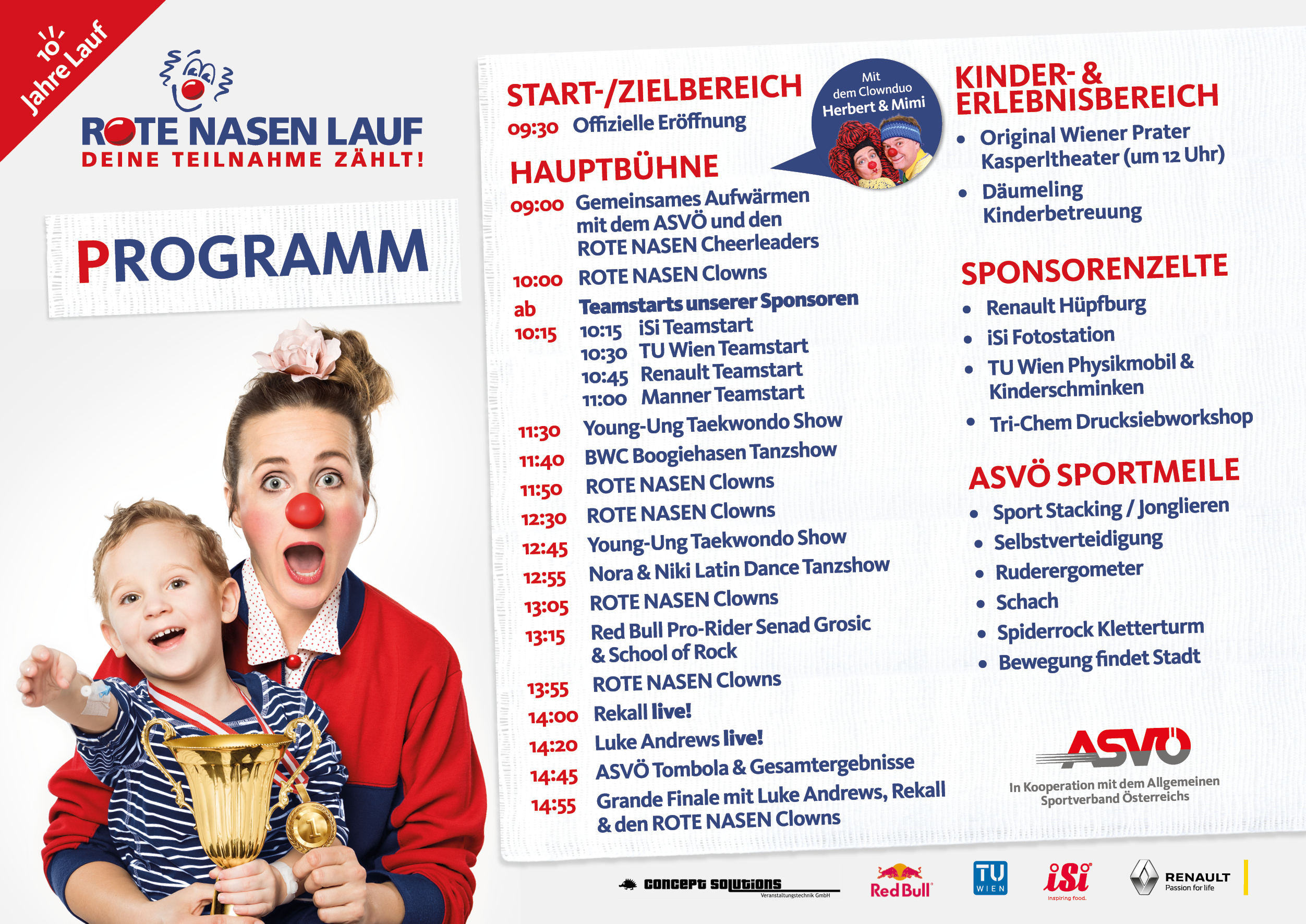 Als wir den ROTE NASEN LAUF vor 10 Jahren ins Leben gerufen haben, hätten wir uns nicht zu träumen gewagt, wie erfolgreich diese Laufserie Jahre später wird. Durch die großartige Unterstützung und Initiative des ASVÖ, der Gemeinden und Vereine in den Bundesländern können alle ROTE NASEN LÄUFE in den Bundesländern als auch der Lauf in Wien auch 2019 wie gewohnt stattfinden.